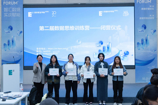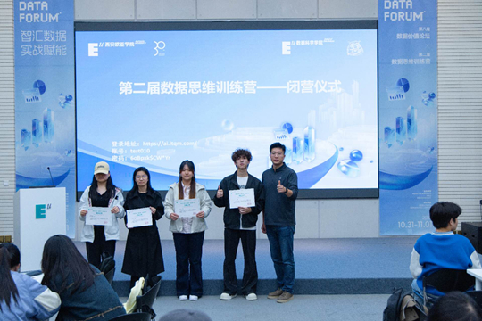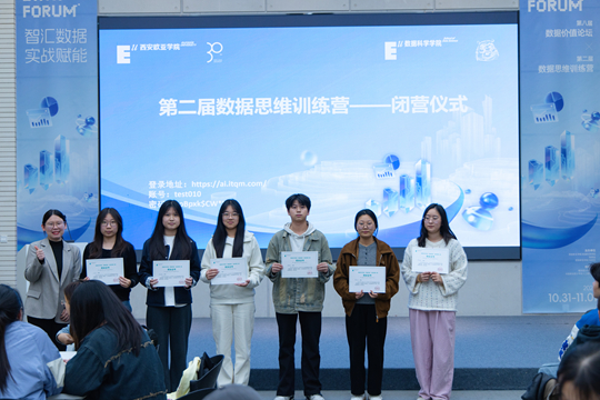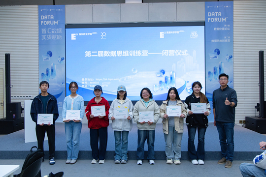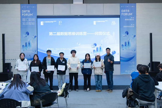 最后,數(shù)據(jù)科學(xué)學(xué)院院長(zhǎng)助理孟妍與教師史博文頒發(fā)結(jié)業(yè)證書(shū),鼓勵(lì)大家將訓(xùn)練營(yíng)所學(xué)轉(zhuǎn)化為長(zhǎng)期競(jìng)爭(zhēng)力,在數(shù)據(jù)領(lǐng)域持續(xù)深耕。至此,第二屆數(shù)據(jù)思維訓(xùn)練營(yíng)閉營(yíng)儀式圓滿(mǎn)結(jié)束,而學(xué)生們的實(shí)戰(zhàn)成長(zhǎng)之路,才剛剛啟航。