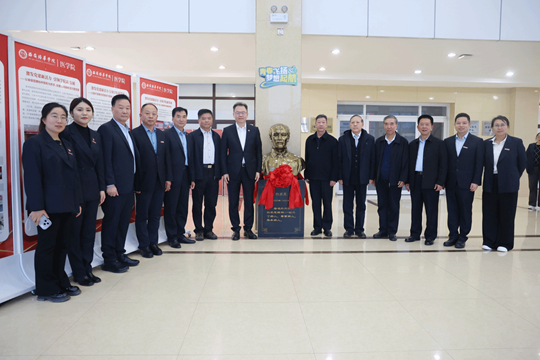 領導嘉賓共同為“白求恩雕像”舉行莊嚴的揭幕儀式