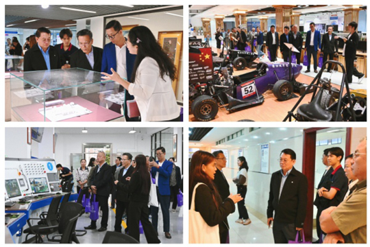會談結束后,在柬埔寨交換生的全程陪同下,代表團先后參觀了學校相關實驗室及學生公寓等教學生活場所。在師生創(chuàng)作展廳,同學們的科創(chuàng)作品與藝術成果展現(xiàn)了扎實的實踐能力。綠智汽車與交通現(xiàn)代技術實驗室的實訓設備與教學成果彰顯了產(chǎn)教融合特色;工程訓練中心的先進設施與學生公寓的完善配套,讓代表團對學校的辦學條件給予充分肯定。來訪嘉賓紛紛表示,通過實地考察和深入交流,對廣州城市理工學院的人才培養(yǎng)質量充滿信心,未來將積極推動柬埔寨學生與學校的交流合作。