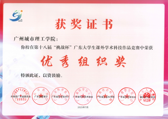 廣州城市理工學(xué)院獲得2025年“挑戰(zhàn)杯”省賽優(yōu)秀組織單位(陳政甫 提供)