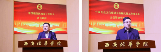 中國銀行陜西省分行行長肖達、中國企業(yè)文化促進會金融文化工作委員會主任管建華先后致辭。分別從行業(yè)發(fā)展、金融服務、文化建設等角度,為校企協(xié)同育人、金融人才培養(yǎng)建言獻策,對西安培華學院在金融教育領域的探索與實踐給予高度肯定。