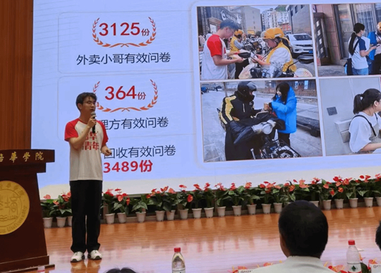 他們聚焦“零工經(jīng)濟(jì)中外賣騎手權(quán)益問題”,從設(shè)計(jì)第一份調(diào)查問卷到聯(lián)系第一位騎手訪談,從梳理繁雜的法律法規(guī)到爭論每一個(gè)對策的可行性……項(xiàng)目在一次次的打磨中逐漸有了清晰的輪廓,也有了溫度。而這個(gè)過程,正是學(xué)!耙再惔賹W(xué)、以創(chuàng)促教”理念的生動(dòng)實(shí)踐。