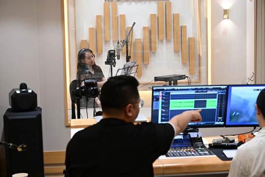 在錄音棚里,她讓聲音節(jié)奏與畫面同步,語氣隨音樂起伏,最終將文字轉(zhuǎn)化為有溫度的聲景。這也印證了她所秉持的理念——好的配音,是用聲音陪伴畫面完成一場真誠的講述。正是這份專業(yè)的掌控力與背后的反復(fù)打磨,讓她成功塑造了打動人心的“極境之聲”。