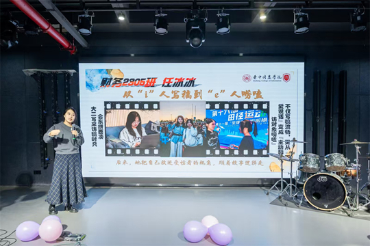 淬煉商學院·國際商學院張冰璐老師首先上臺分享。她以《以熱愛為炬,與校媒共成長》為主題,分享了學院宣傳團隊任冰冰,陳瑞濤,田正大三位同學的蛻變故事,鼓勵大家在實踐中成長,在錘煉中賦能,更在團隊中找到自我的價值。她鼓勵所有校媒人將熱愛化為持續(xù)的動力,并真摯寄語:“如果有熱愛,努力鍛煉本領(lǐng);如果有擅長,盡量樂在其中”,點燃了在場每一位校媒人的初心。