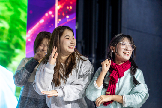 本次頒獎典禮巧妙融入豐富多元的互動體驗。現(xiàn)場特設拍照墻及多個互動打卡游戲攤位,吸引了師生廣泛參與。大家在“趣味影視臺詞”中機智應答,在“共享大腦”趣味游戲中捕捉美好,在輕松愉悅的交流中拉近距離,笑聲與掌聲不斷,氣氛格外熱烈。