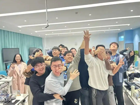 雙體教會(huì)他們的第一課,不是知識(shí),而是節(jié)奏。規(guī)律的打卡、嚴(yán)謹(jǐn)?shù)睦龝?huì)、真實(shí)的項(xiàng)目驅(qū)動(dòng)——所有人仿佛被突然置入一個(gè)微縮的職場(chǎng),手忙腳亂成為最真實(shí)的寫(xiě)照。“但也就是那個(gè)過(guò)程,讓我們很快融合在一起了!因?yàn)槲覀兡繕?biāo)一致,所以遇到困難,就會(huì)一起想辦法解決它!就像我們的部門(mén)文化建設(shè)一樣,一周時(shí)間!我們就都弄好了!”王浩宇是部門(mén)的第一任經(jīng)理,也是他帶著大家定出了“鳴霄三部”的名字,和一直引領(lǐng)著大家前進(jìn)的部門(mén)口號(hào)——一鳴驚人問(wèn)蒼穹,三部定當(dāng)沖云霄!