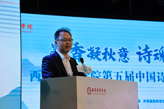為傳承中華優(yōu)秀傳統(tǒng)文化,以千年文脈涵養(yǎng)學(xué)子精神風(fēng)貌,12月1日,西安培華學(xué)院第五屆中國詩詞大會總決賽在大學(xué)生活動中心啟幕。陜西省詩詞學(xué)會會長劉煒評,何家營鼓樂社社長鄭亞福,西安培華學(xué)院理事長姜波,黨委書記劉鋒,常務(wù)副校長、語言工作委員會主任胡俊生,文學(xué)院院長亢世勇等師生代表集聚一堂,共赴詩意盛宴。本次大賽由漢語言文學(xué)專業(yè)行業(yè)導(dǎo)師仵埂、學(xué)院督導(dǎo)組組長趙維森、漢語言文學(xué)專業(yè)帶頭人傅紹良、學(xué)院創(chuàng)新研究中心喬芳、學(xué)院院長助理張萍擔(dān)任評委。
