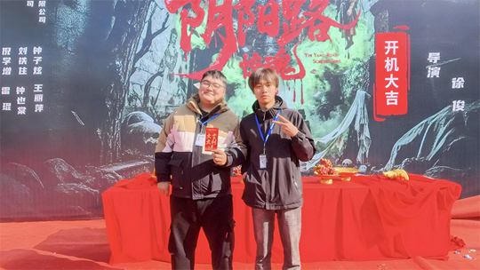 近日,晉中信息學院電影商務產(chǎn)業(yè)學院與萬畫影業(yè)聯(lián)合開展的“帶你拍電影”產(chǎn)教融合實踐項目正式啟動。經(jīng)報名與選拔,電影商務產(chǎn)業(yè)學院第四期實訓班學員李樹杰、韓爍兩位同學脫穎而出,前往浙江省東陽市的橫店影視城,參與院線驚悚懸疑電影《陰陽路驚魂》的攝制工作。本片由青年導演徐俊執(zhí)導,何雨宸主演,定檔2026年8月19日全國上映。本次實踐不僅是一次專業(yè)教學與產(chǎn)業(yè)實景的深度融合,也成為學生走出課堂、觸摸真實影視工業(yè)的重要契機。