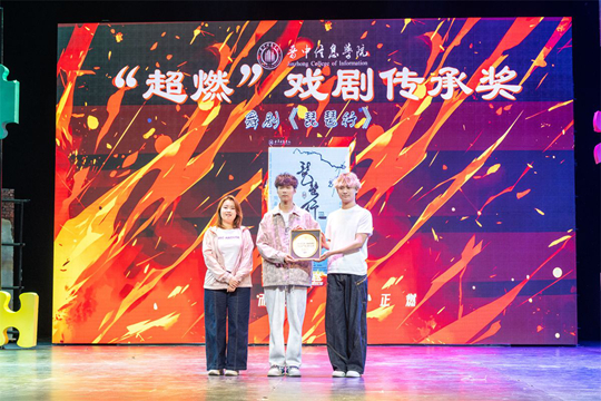 書院部王一然為獲得“超燃”卓越劇本獎的音樂劇《愛的飛行日記》、話劇《面向自我的陳述》頒獎。