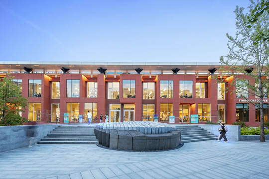 “創(chuàng)新理論之父”熊彼特則強(qiáng)調(diào)“組合”的力量,他認(rèn)為創(chuàng)新是“建立一種新的生產(chǎn)函數(shù)”,也就是將現(xiàn)有的要素,如技術(shù)、知識、資源、組織等進(jìn)行創(chuàng)造性重組,便能催生新的價(jià)值。歐亞虹橋?qū)W生中心就是這樣資源重組的結(jié)果。我們把原餐廳一層改造為學(xué)習(xí)中心,將圖書、咖啡、餐飲整合到一個(gè)空間,使得整個(gè)虹橋?qū)W生中心空間利用率和運(yùn)營時(shí)效提升了三倍。你們作為用戶,對它的使用體驗(yàn)自有答案。虹橋?qū)W生中心不久前也獲得了亞洲教育環(huán)境設(shè)計(jì)金獎(jiǎng)。(掌聲)