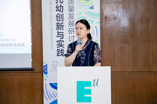 陳陽院長分享了學(xué)校建校 30 周年及人文教育學(xué)院建院10周年之際,學(xué)院聚焦兒童教育,面對(duì)人口結(jié)構(gòu)變化與教育升級(jí)挑戰(zhàn)取得的成效,面臨的挑戰(zhàn)以及及時(shí)調(diào)整學(xué)前教育專業(yè)人才培養(yǎng)策略,構(gòu)建 “五力” 人才培養(yǎng)模型,培養(yǎng)高素質(zhì)學(xué)前教育從業(yè)者。她表示無論學(xué)前教育面臨怎樣的挑戰(zhàn),人文教育學(xué)院將持續(xù)堅(jiān)守初心,致力于培養(yǎng)更多高素質(zhì)學(xué)前教育人才。