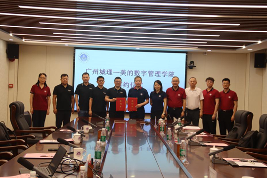 最后,校企雙方代表簽署廣州城理—美的數(shù)字管理學院共建協(xié)議并進行揭牌儀式。