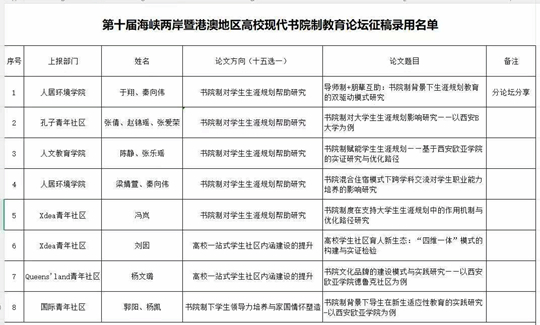 西安歐亞學(xué)院第十屆海峽兩岸暨港澳地區(qū)高,F(xiàn)代書(shū)院制教育論壇征稿錄用名單