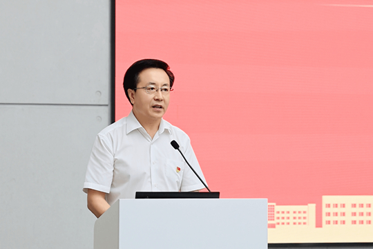 趙國華在講話中,向受表彰的集體與個(gè)人致以祝賀,回顧黨的奮斗歷程與學(xué)校黨建成果,并從五個(gè)方面部署工作。他強(qiáng)調(diào),立足新時(shí)代,奮進(jìn)新征程,以黨建為引領(lǐng),讓旗幟更紅、根基更牢:一要把黨建優(yōu)勢轉(zhuǎn)化為發(fā)展優(yōu)勢,讓活力變動(dòng)能、成果促效能,以高質(zhì)量黨建賦能高質(zhì)量發(fā)展;二要弘揚(yáng)偉大建黨精神,讓堡壘更堅(jiān)固、先鋒更閃耀,讓紅色基因在育人中傳承、在創(chuàng)新中生輝;三要強(qiáng)化頭雁領(lǐng)航與榜樣帶動(dòng),讓“雙帶頭人”顯擔(dān)當(dāng)、獲獎(jiǎng)?wù)咦魇痉,以典型力量聚奮進(jìn)合力;四要放大黨建品牌輻射效應(yīng),讓標(biāo)桿立得穩(wěn)、特色亮得出,推動(dòng)黨的建設(shè)從“標(biāo)桿引領(lǐng)”到“全面提質(zhì)”;五要以黨建“強(qiáng)引擎”驅(qū)動(dòng)學(xué)校向中國一流國際化應(yīng)用型本科高校加速邁進(jìn),在教育強(qiáng)國強(qiáng)省建設(shè)中,寫就“黨建紅引領(lǐng)教育興,歐亞人建功新時(shí)代”的嶄新篇章。