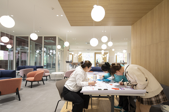 五是,文化與校園環(huán)境的協(xié)同育人。走進(jìn)西安歐亞學(xué)院校園,如同踏入一座流動(dòng)的建筑藝術(shù)館。在“校園不是簡(jiǎn)單的物理空間,而是充滿能量的教育場(chǎng)域”的教育觀指引下,學(xué)校將環(huán)境建設(shè)作為育人的重要載體,從圖書(shū)館的開(kāi)放式空間到教學(xué)樓的互動(dòng)式布局,再到即將投入使用的教育綜合體「春山里」學(xué)生公寓和綜合運(yùn)動(dòng)場(chǎng)館「和光」文體中心,每一處設(shè)計(jì)都著眼于激發(fā)學(xué)生的創(chuàng)造力與協(xié)作力。
