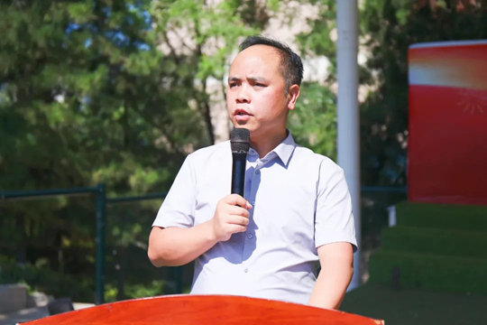 黨委副書記、副校長(zhǎng)周造華為軍訓(xùn)團(tuán)及各營(yíng)授旗