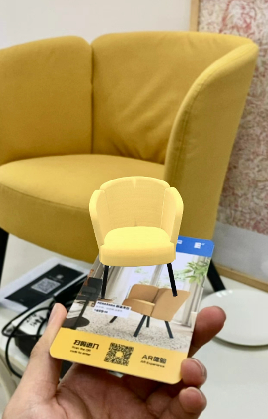 面對(duì)物理空間不足以擺放宜家上萬(wàn)件產(chǎn)品的境遇,團(tuán)隊(duì)提出了用數(shù)字空間置換物理空間的數(shù)字化解決方案。2024年7月開(kāi)始,他們與宜家企業(yè)導(dǎo)師聯(lián)合進(jìn)行了“AR數(shù)字卡”及“數(shù)字交互樣板間”等產(chǎn)品的設(shè)計(jì)與開(kāi)發(fā)。