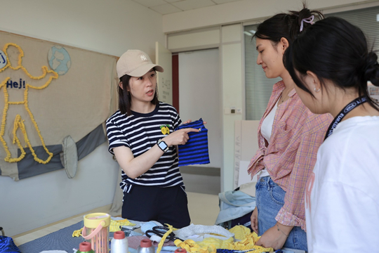 “我希望把這份特殊的理解帶入到可持續(xù)課程之中!2024年秋季學(xué)期的《概念設(shè)計(jì)與實(shí)現(xiàn)導(dǎo)論》課上,王佳和學(xué)生們將宜家捐贈(zèng)的廢舊沙發(fā)布料和員工制服作為可持續(xù)創(chuàng)作的原料,經(jīng)過(guò)重新構(gòu)思、剪裁與設(shè)計(jì),讓本該置身于回收站或者垃圾場(chǎng)的舊布料煥發(fā)了新的生機(jī),為其賦予了“二次重生”的價(jià)值。