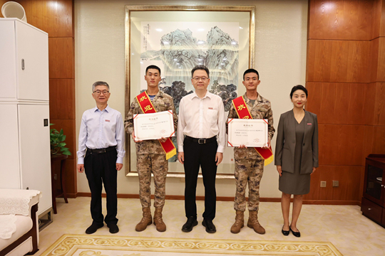 姜波理事長深情表示:“你們在閱兵訓(xùn)練場上揮灑汗水,以鏗鏘步伐走過天安門廣場,不僅展現(xiàn)了新時代軍人的風(fēng)采,更把培華人‘自強不息、開拓前進’的精神帶到了祖國的心臟!”他勉勵兩位校友不忘初心,把部隊的優(yōu)良作風(fēng)融入今后工作,持續(xù)發(fā)揚吃苦耐勞、拼搏向上的品質(zhì),成為廣大青年特別是00后的學(xué)習(xí)楷模。