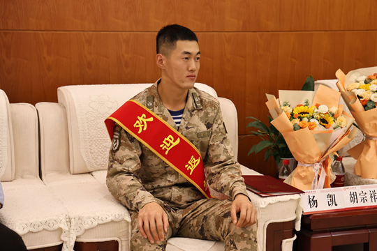 初秋的培華校園丹桂飄香、陣陣秋雨送來絲絲涼爽。9月11日清晨,西安培華學(xué)院校園內(nèi)電子屏“熱烈歡迎楊凱、胡宗祥參加九三閱兵凱旋歸來”格外耀眼。剛剛參加完“九三閱兵”的2022屆校友楊凱、2024屆校友胡宗祥身著筆挺戎裝返回母校,與師長和學(xué)弟學(xué)妹分享成長經(jīng)歷。