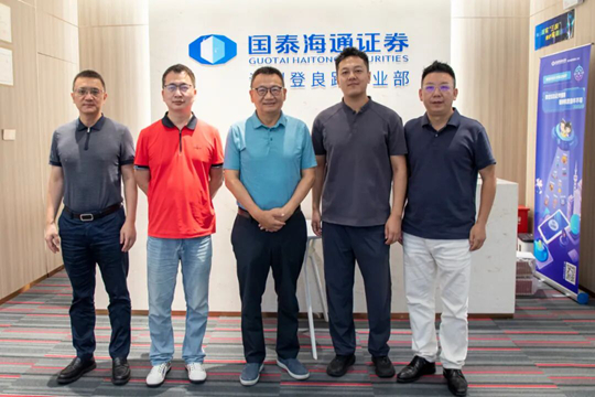 胡建波一行走訪巨翔(右二)所在的國泰海通證券股份有限公司深圳登良路證券營業(yè)部