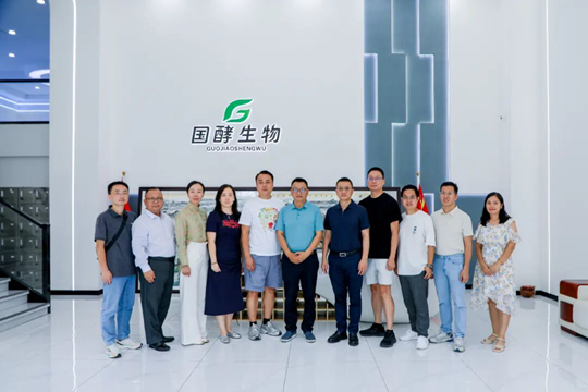 胡建波一行走訪梁華(左五)在佛山創(chuàng)立的國酵生物(廣東)有限公司