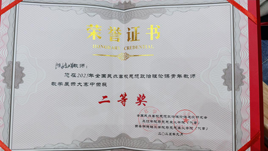 本次大賽分為初賽和復(fù)賽兩個環(huán)節(jié),經(jīng)過層層選拔與嚴(yán)格評審,最終確定入圍復(fù)賽的教師名單。復(fù)賽展示環(huán)節(jié),陳姣娣以《揚自信之帆,讓中華文化“出!庇帧俺霾省薄T就社會主義文化新輝煌》為題參加《習(xí)近平新時代中國特色社會主義思想概論》課程競賽。她以清晰的教學(xué)邏輯、生動的案例分析、互動性強的教學(xué)設(shè)計,并融入AI元素,將思想政治理論知識與學(xué)生思想實際、社會現(xiàn)實問題緊密結(jié)合,既凸顯了思想政治理論課的思想性、理論性,又展現(xiàn)了親和力、針對性,贏得了評委專家的一致認可。賽后,陳姣娣表示:“之前一直都是在廣東省參加教學(xué)競賽,這是第一次走出廣東省參加比賽,經(jīng)驗屬實可貴。專家的點撥讓我對思政課教學(xué)有了更深刻的領(lǐng)悟,與全國同行的交流更開拓了教學(xué)視野,這份榮譽離不開學(xué)校、學(xué)院的悉心培養(yǎng)與支持!