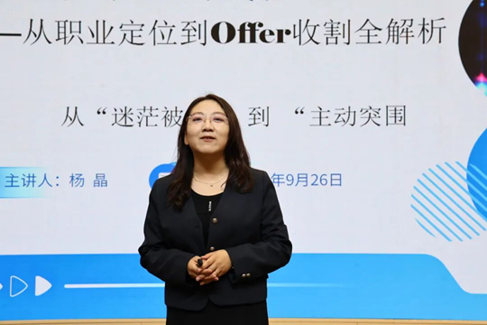 就業(yè)指導(dǎo)師、人力資源專家楊晶為大學(xué)生進(jìn)行就業(yè)創(chuàng)業(yè)指導(dǎo)講座,幫助學(xué)生規(guī)劃職業(yè)道路,提升就業(yè)創(chuàng)業(yè)能力
