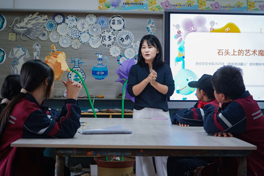 近日,西安歐亞學院結(jié)對幫扶清澗縣牛家灣小學教育環(huán)境提升設計與改造工程圓滿完成,以“石頭上的藝術(shù)魔法”為主題的公益藝術(shù)課在清澗縣寬州鎮(zhèn)牛家灣小學成功舉辦。
