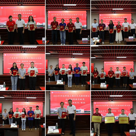 現(xiàn)場播放2024年學校師德主題征文及微視頻征集活動微視頻組一等獎作品,以鮮活影像生動呈現(xiàn)學校教師立德修身、潛心育人的精神風貌。隨后,黨委教師工作部副處長胡杜澤主持并通報獲獎情況,學校領導分別為2025年廣東省南粵優(yōu)秀教師、南粵優(yōu)秀教育工作者、廣東民辦學校優(yōu)秀教師及優(yōu)秀教育工作者、2024年師德主題教育月征文、微視頻省級及校級獲獎者頒發(fā)榮譽證書,以莊重儀式致敬教師群體的堅守與奉獻,傳遞學校對師德建設的高度重視。