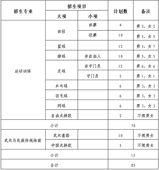 。ㄒ唬┻\(yùn)動(dòng)訓(xùn)練、武術(shù)與民族傳統(tǒng)體育專業(yè)實(shí)行單獨(dú)招生,經(jīng)國家體育總局審批備案后,提前錄取。