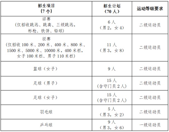 1.我校文化成績錄取控制線為180分,對具備一級運動員等級的考生,可在我校文化錄取控制線下降低30分錄。粚邆溥\動健將技術(shù)等級的考生,可在我校文化錄取控制線下降低50分錄取。