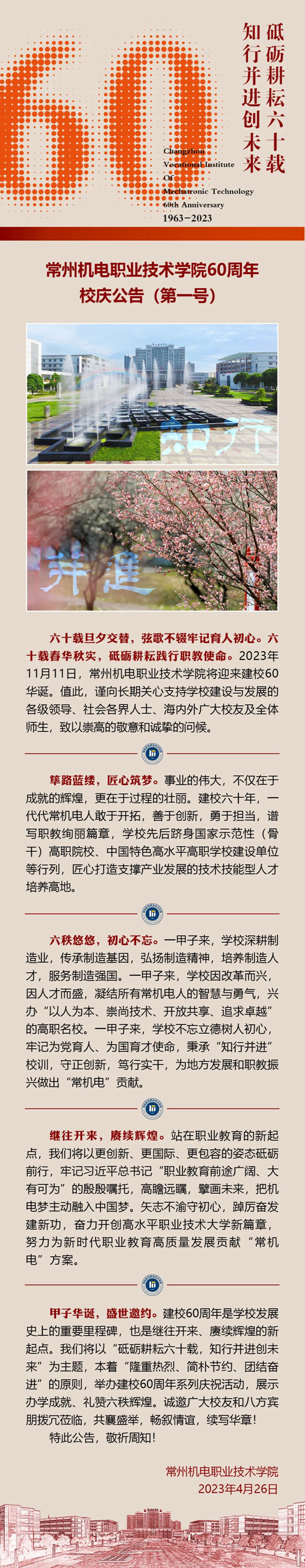 常州機電職業(yè)技術學院60周年校慶公告(第一號)