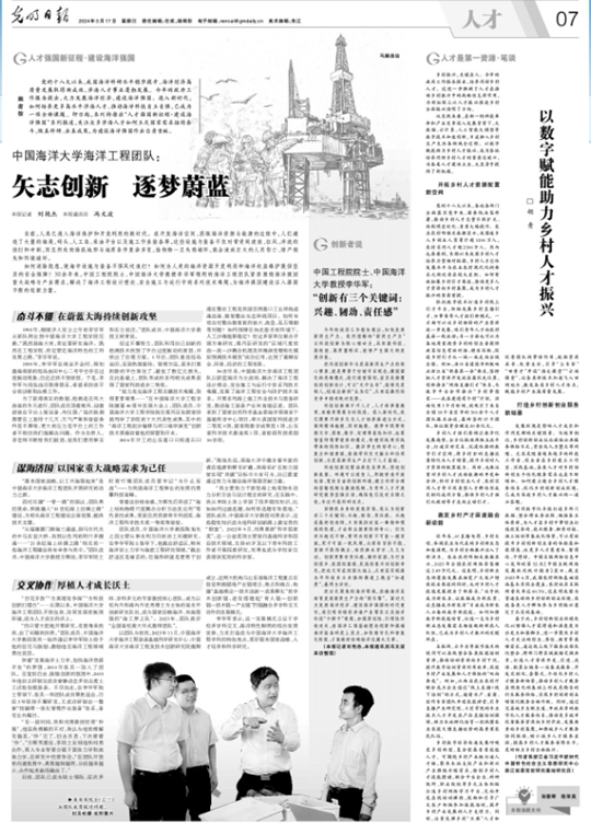 | 光明日報丨中國海洋大學(xué)海洋工程團(tuán)隊:矢志創(chuàng)新逐夢蔚藍(lán) |