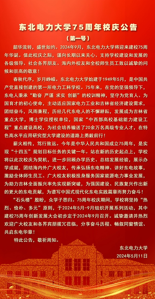 東北電力大學(xué)75周年校慶公告(第一號)