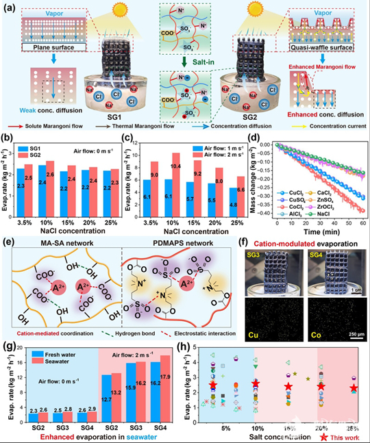 圖2. 太陽能脫鹽及促進海水蒸發(fā)表征。