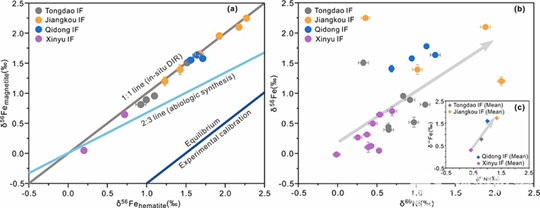 圖2 華南板塊Sturtian 冰消期IFs中共生赤鐵礦和磁鐵礦鐵(δ56Fe)和鎳(δ60Ni)同位素特征