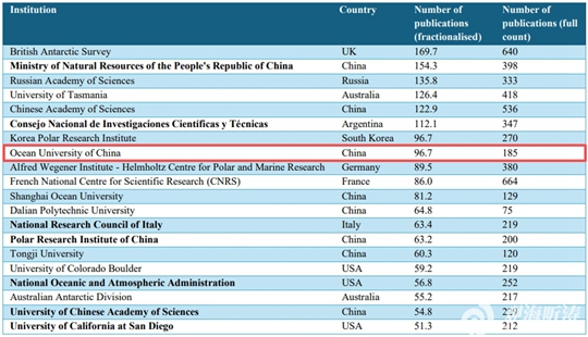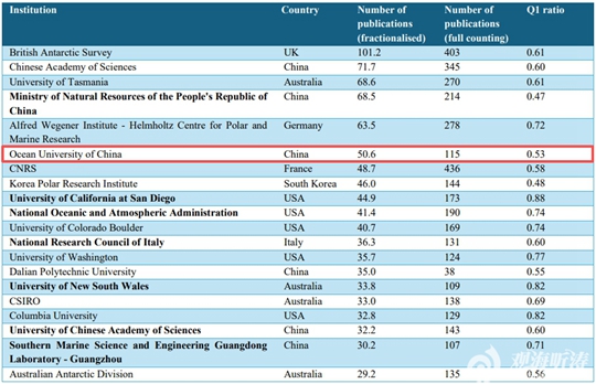 | 中國海洋大學發(fā)表南極研究論文數量位居全球高校第二 |