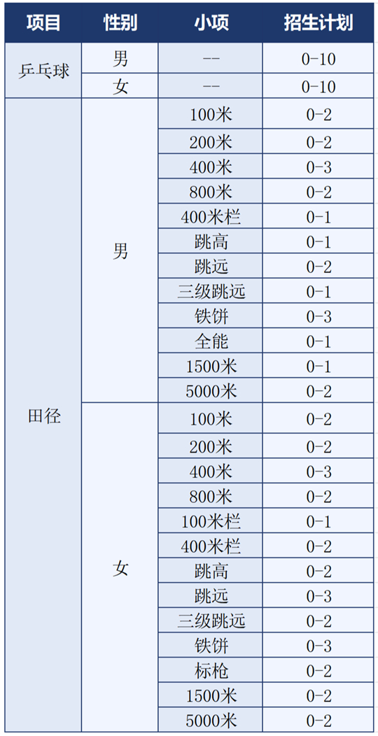 根據(jù)《教育部辦公廳關(guān)于做好2026年普通高等學(xué)校部分特殊類型招生工作的通知》(教學(xué)廳〔2025〕7號)等文件精神,結(jié)合我校高水平運(yùn)動隊(duì)建設(shè)規(guī)劃,2026年我校繼續(xù)開展高水平運(yùn)動隊(duì)招生工作。