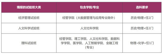 。ǘ┤宋目茖W(xué)試驗(yàn)班:首選科目為歷史或物理,再選科目不限。大一結(jié)束時(shí)學(xué)生可在人文社科學(xué)院的所有專(zhuān)業(yè)內(nèi)選定主修專(zhuān)業(yè);