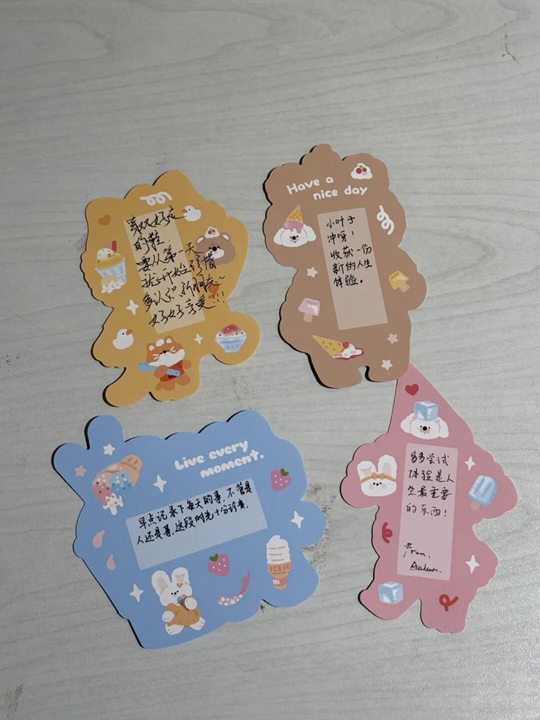 互動(dòng)環(huán)節(jié)特別設(shè)置了明信片書(shū)寫(xiě)環(huán)節(jié)!靶∪~子”們將心得與祝福寫(xiě)進(jìn)明信片,寫(xiě)給明年的新葉子,也留給未來(lái)的自己,傳遞至下一屆進(jìn)博舞臺(tái)。學(xué)院也為每位“小葉子”準(zhǔn)備了定制紀(jì)念禮物以及特別的“禮物盲盒”環(huán)節(jié)。各式精美的禮品被精心包裝,等待著“小葉子”親手開(kāi)啟這份驚喜。每一份禮物都承載著對(duì)志愿者們辛勤付出的誠(chéng)摯感謝。