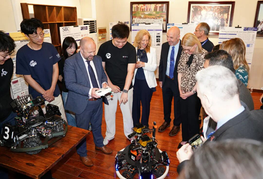 2025年5月,團(tuán)隊(duì)成員向利物浦市副市長代表團(tuán)演示了其自主研發(fā)并組裝的機(jī)器人