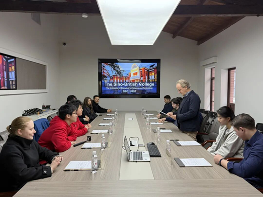 參訪第一站來到復(fù)興路校區(qū)具有百年歷史的鐘樓,這座建筑現(xiàn)為上海理工大學(xué)復(fù)興路校區(qū)的校史館。在館內(nèi)會(huì)議室,中英國際學(xué)院教師James Leggate為師生作了學(xué)院基本情況介紹,系統(tǒng)闡述了學(xué)院辦學(xué)特色,并詳細(xì)介紹了學(xué)院獨(dú)特的課程體系。通過講解與交流,國際學(xué)生了解到學(xué)校自2006年以來與英國高校開展合作辦學(xué),共同創(chuàng)辦了中英國際學(xué)院。學(xué)院的“一對(duì)多”合作辦學(xué)模式、創(chuàng)新人才培養(yǎng)理念以及計(jì)劃內(nèi)雙學(xué)位項(xiàng)目(即同時(shí)獲得上海理工大學(xué)學(xué)位與英方合作院校學(xué)位)為學(xué)生們帶來了獨(dú)特優(yōu)勢;(dòng)環(huán)節(jié)中,同學(xué)們針對(duì)課程設(shè)置與學(xué)習(xí)體驗(yàn)積極提問,James均作了詳細(xì)解答。一名漢語言生表示,James老師的講解讓他對(duì)中英國際學(xué)院的學(xué)習(xí)生活產(chǎn)生了濃厚興趣。