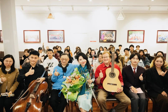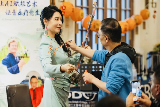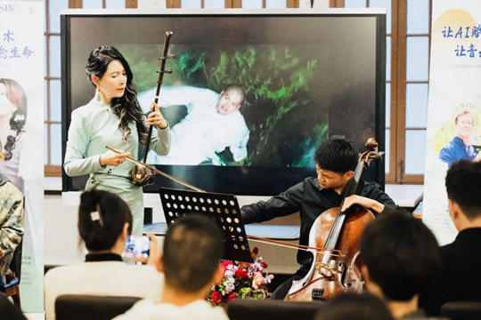 3月14日下午,上海理工大學(xué)中英國際學(xué)院迎來了一場(chǎng)藝術(shù)與科技交融的視聽盛宴,此次講座邀請(qǐng)到了中英國際學(xué)院榮譽(yù)教授、海派民樂跨界藝術(shù)領(lǐng)軍者、國家一級(jí)演員、二胡藝術(shù)家馬曉輝教授攜手她的嘉賓朋友們,以《讓AI賦能藝術(shù),讓音樂療愈生命》為主題,帶領(lǐng)師生探索藝術(shù)與人工智能的跨界可能,正式啟動(dòng)了2025年上海宋慶齡基金會(huì)馬曉輝文化藝術(shù)專項(xiàng)基金“校園公益行”活動(dòng)。馬曉輝教授以多重身份深刻詮釋了藝術(shù)創(chuàng)新的豐富內(nèi)涵,同時(shí)成為“藝術(shù)校園、文化校園、智慧校園”的典范,向世界生動(dòng)講述中國故事,成為一張閃耀的文化名片。中英國際學(xué)院黨委副書記、副院長(zhǎng)蔡卉,以及師生代表們共同參加本次活動(dòng),全場(chǎng)座無虛席。