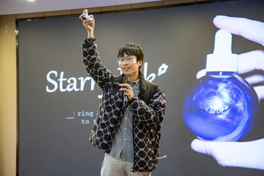 首場講座以校友創(chuàng)業(yè)分享啟幕。學(xué)院2015級校友、星墨StarryInk品牌創(chuàng)始人余昊源以“讓世界‘寫’滿中國色彩:墨水品牌的創(chuàng)新與破圈”為題,講述從校園實(shí)驗(yàn)室到國際市場的創(chuàng)業(yè)歷程。他通過展示產(chǎn)品研發(fā)手稿、海外參展影像等資料,復(fù)盤企業(yè)戰(zhàn)略轉(zhuǎn)型路徑,重點(diǎn)解析榮獲國際獎項(xiàng)的“冷萃墨水系列”(Cold Brew Ink)如何將植物染料萃取技術(shù)與現(xiàn)代美學(xué)結(jié)合,開創(chuàng)墨水制造新范式,打造文化輸出創(chuàng)新樣本。余昊源還從創(chuàng)業(yè)者視角,為在校生梳理職業(yè)發(fā)展路徑與團(tuán)隊(duì)分工邏輯,并針對創(chuàng)業(yè)初期關(guān)鍵問題提供實(shí)操建議,激發(fā)學(xué)生對創(chuàng)新與品牌國際化的深層思考。