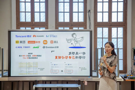 收官講座由2023屆校友梅佳蓉主講,圍繞申研與求職兩大議題展開。在申研板塊,她以時(shí)間軸拆解申請全流程,強(qiáng)調(diào)“早規(guī)劃、早準(zhǔn)備”的重要性,并通過案例解析個(gè)人陳述撰寫要點(diǎn)及材料遞交規(guī)范,分享規(guī)避風(fēng)險(xiǎn)的實(shí)用技巧。針對求職,梅佳蓉提出“崗位需求-個(gè)人優(yōu)勢雙向匹配”方法論,結(jié)合自身實(shí)習(xí)經(jīng)歷,闡釋如何通過數(shù)據(jù)量化成果、精準(zhǔn)匹配關(guān)鍵詞提升簡歷競爭力,并傳授面試應(yīng)答技巧。她以“實(shí)習(xí)是一場重新認(rèn)識自己的修行”總結(jié)實(shí)踐經(jīng)驗(yàn)的價(jià)值,為學(xué)弟學(xué)妹指明職業(yè)探索方向。