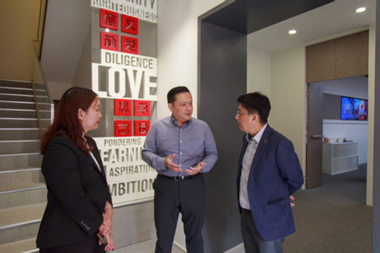 Rick Tay對學(xué)院的熱情接待表示感謝,高度肯定了學(xué)院“一對多”合作辦學(xué)模式、人才培養(yǎng)、國際交流方面的做法和成果,并簡要介紹了新加坡管理大學(xué)的基本情況、辦學(xué)特色、辦學(xué)項目以及特色課程。他表示,雙方在辦學(xué)理念、人才培養(yǎng)、教學(xué)特色等方面有許多相似之處,期待雙方建立友好的合作關(guān)系,在合作辦學(xué)、人才培養(yǎng)、師生交流、游學(xué)項目、校企合作等領(lǐng)域深化合作,推動優(yōu)質(zhì)教育資源共享。