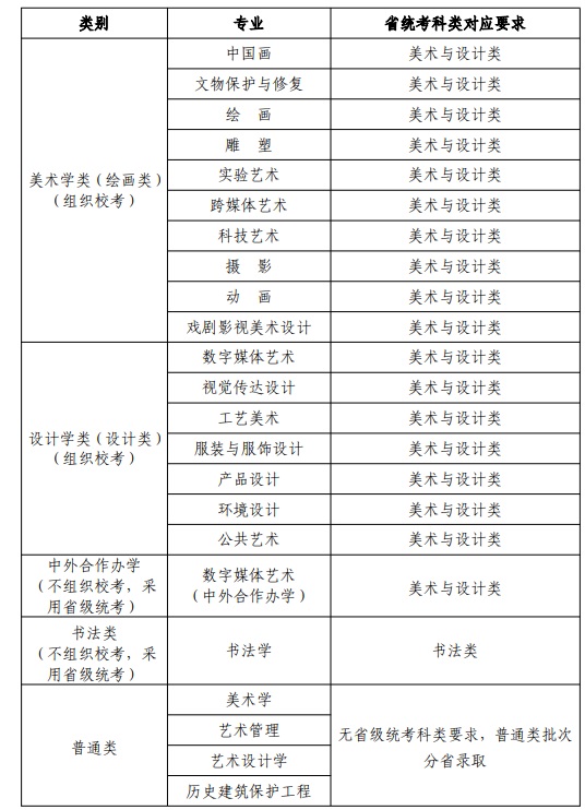 | 天津美術(shù)學(xué)院2025年本科招生專業(yè)省統(tǒng)考科類對應(yīng)要求 |