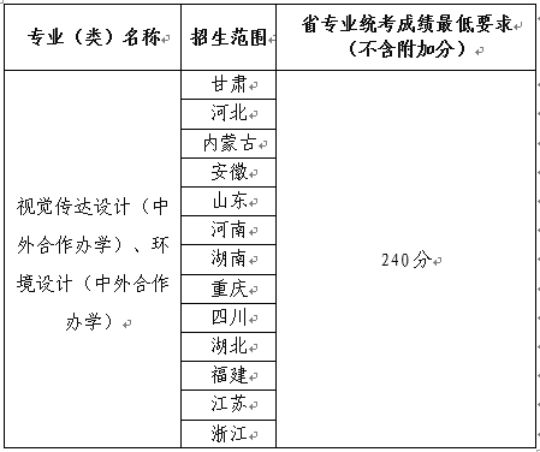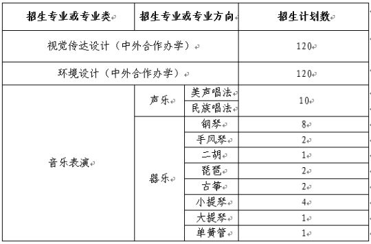 。ㄒ唬┮曈X傳達(dá)設(shè)計(jì)(中外合作辦學(xué))專業(yè)120名,環(huán)境設(shè)計(jì)(中外合作辦學(xué))專業(yè)120名。