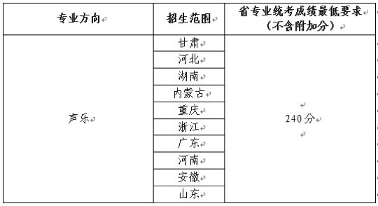 只招收美聲和民族唱法的考生。考生自身身心健康狀況不影響專業(yè)表演、演唱和學(xué)習(xí),無發(fā)聲器官疾病,符合《普通高等學(xué)校招生體檢工作指導(dǎo)意見》及有關(guān)補(bǔ)充規(guī)定要求。
